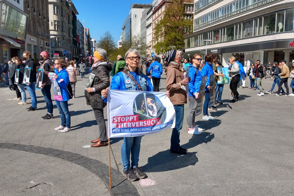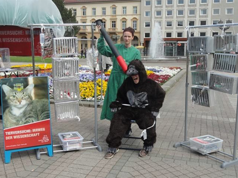 Der Aktionstag - 2015 fand er am 18. April statt - war wieder ein voller Erfolg! Aktive in mindestens 30 deutschen Städten waren unserem Aufruf gefolgt und zeigten kreativen Einsatz gegen Tierversuche! Ob Einzelperson, Arbeitsgruppe, lokaler Tierschutzverein oder überregionaler Verein – Tausende Menschen waren auf den Beinen, um bundesweit eine große Öffentlichkeit über den Irrweg Tierversuch aufzuklären und für die Abschaffung der Tierversuche zu mobilisieren.
